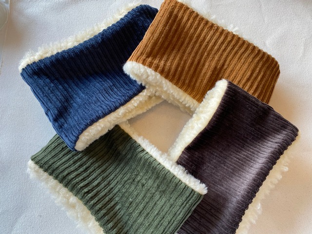 ◾️nuku nuku warm - Corduroy - 表地: コットン97%, ポリウレタン3% 裏地:ポリエステル65%, アクリル35% どんなお洋服にも合わせやすい シンプルなコーデュロイと あったかシープボアの ネックウォーマー カラーは4色↓ ・キャメル ・モスグリーン ・ビターチョコ ・ネイビー 2枚目のお写真をご覧になって お手持ちのお洋服とどれが合うかな? なんて想像しながら じーっくり悩んでください♡ お顔と首の大きさをお伺いして ひとつずつお作りいたします